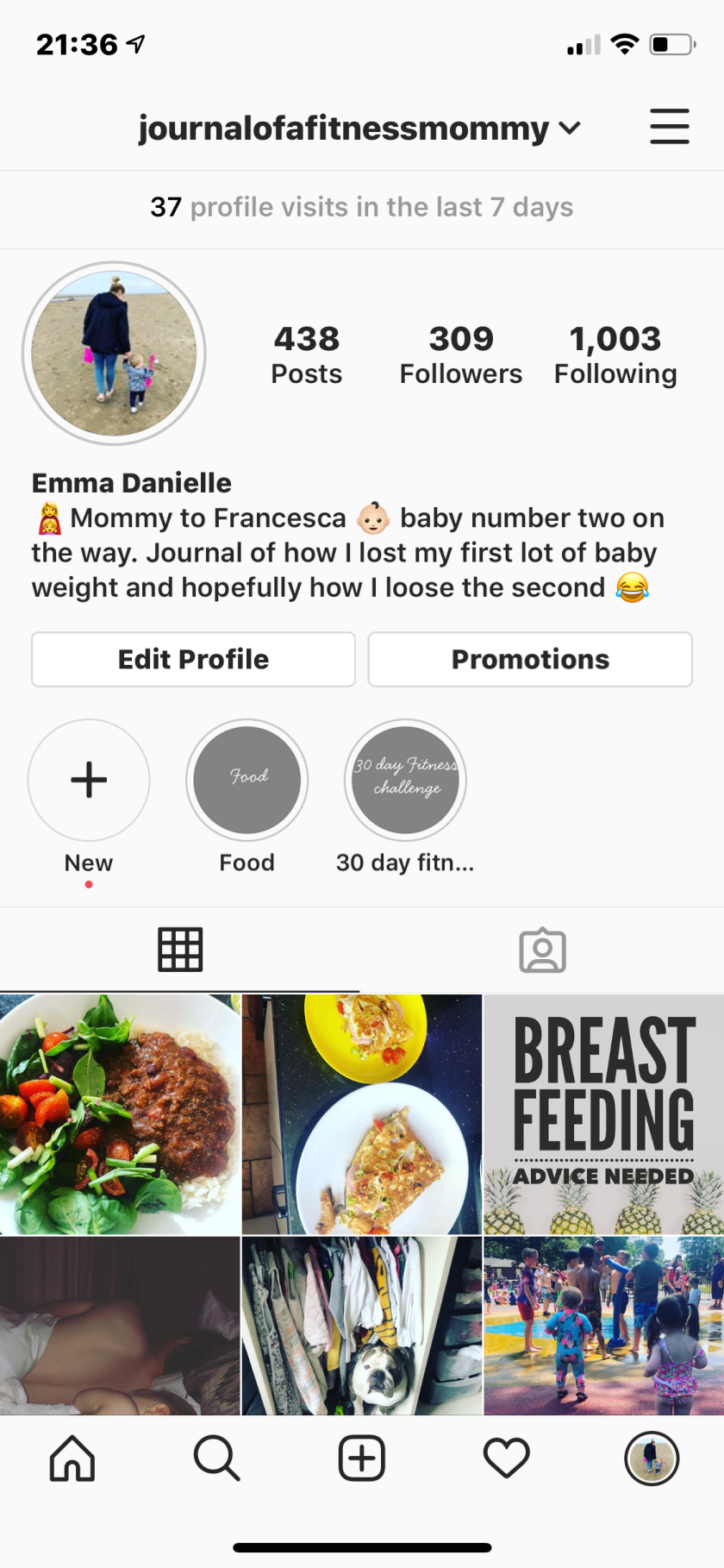 Although I have given up my teaching job, I plan on completing my personal training qualification and specialising in pre and post natal exercise, when I have got the hang on having two little ones. This is something I find so interesting. I set up my Instagram page to depict my weight loss progress after having Francesca, I plan to do the same with this baby and hopefully use it to help other Mommies. I regularly post little daily challenges you can complete at home around your children. I do this with my knowledge as a PE teacher as I am yet to complete my PT qualification. I also post what we are eating and what we have been up doing.